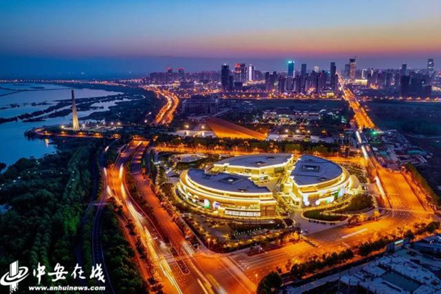 4月17日,隨著安徽創(chuàng)新館開館進入倒計時,場館周邊的照明設備開足馬力,開啟“夜景模式”,點亮旖旎的巢湖湖畔。