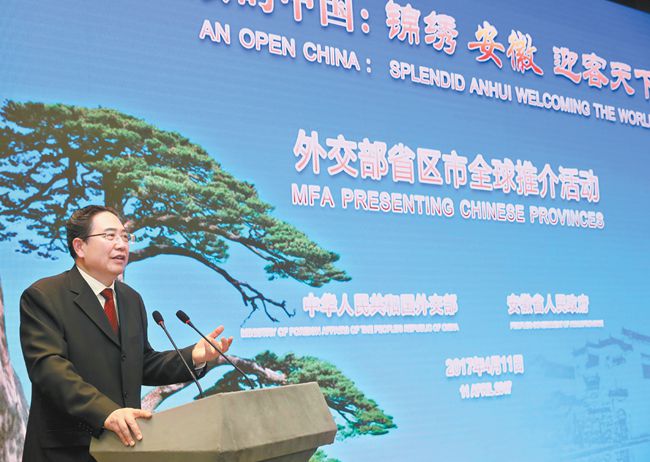 央廣網(wǎng)北京4月12日消息(記者王曉蕾 高藝寧)昨日下午,以“開(kāi)放的中國(guó):錦繡安徽,迎客天下”為主題的外交部省區(qū)市全球推介活動(dòng)在外交部藍(lán)廳舉行!皦衙馈薄ⅰ昂裰亍、“創(chuàng)新”被發(fā)言嘉賓多次提起,成為此次安徽推介會(huì)熱詞。
