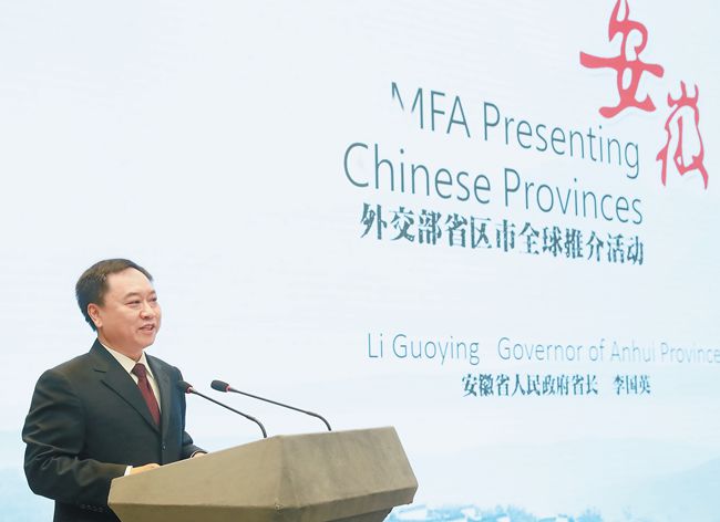 省長(zhǎng)李國(guó)英作安徽省情推介(圖片源自安徽日?qǐng)?bào))