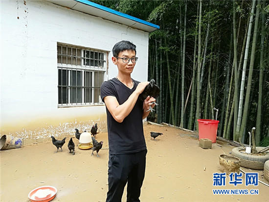 胡本生和他的“五黑雞”。新華網(wǎng)李東標 攝