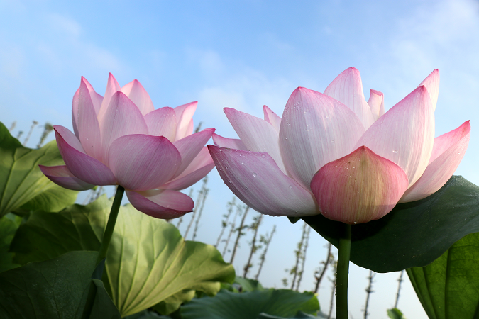 亳州譙城區(qū)牛集鎮(zhèn)靈子門村蓮藕種植基地荷花盛放。
