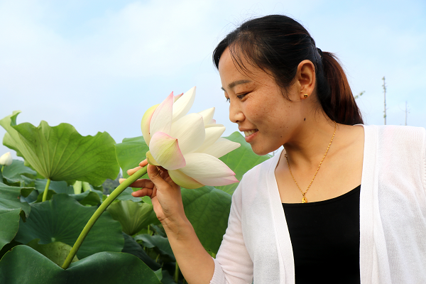 “接天蓮葉無(wú)窮碧,映日荷花別樣紅!7月7日,亳州市譙城區(qū)牛集鎮(zhèn)靈子門村蓮藕種植基地,碧葉連天,紅蓮怒放,賞荷的村民絡(luò)繹不絕,紛紛拍照留念;丶葹榇迕裉峁┝诵蓍e新去處,又幫助貧困群眾鼓起“錢袋子”、脫掉“窮帽子”。