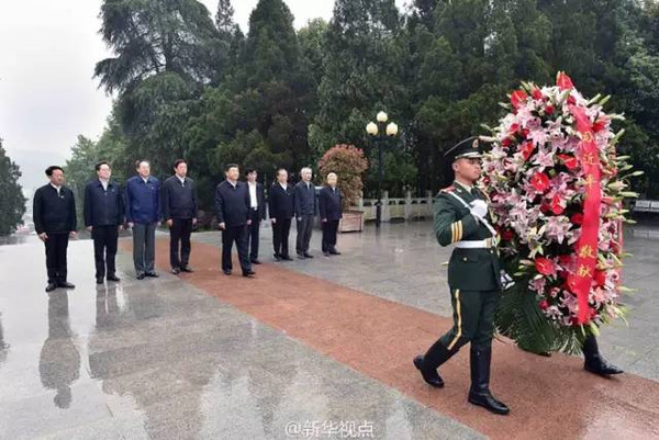 4月24日,習(xí)近平總書記到安徽考察,前往金寨縣向革命烈士紀(jì)念塔敬獻(xiàn)花籃。上午11時30分許,習(xí)近平的身影出現(xiàn)在安徽省六安市金寨縣紅軍廣場。霏霏細(xì)雨中,習(xí)近平向烈士紀(jì)念塔敬獻(xiàn)花籃。隨后,瞻仰了紅軍紀(jì)念堂,參觀了金寨縣革命博物館。