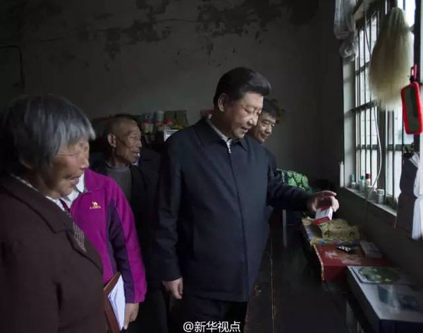 安徽省花石鄉(xiāng)大灣村,68歲的貧困戶汪能?吹搅(xí)近平總書記沿著石階走向他家,快步迎了上去,緊緊握住總書記的手,激動不已?倳浾f:“老汪你好,來看望你們!蓖裟鼙Uf,做夢都沒想到您會到家里來,共產(chǎn)黨政策好,給我們帶來好多福分!習(xí)近平拿起桌上的扶貧手冊,一邊看一邊詢問老汪家的情況。聽說老汪愛人有高血壓,一年藥費要花兩三千塊錢,習(xí)近平說,因病致貧、因殘致貧問題時有發(fā)生,扶貧機(jī)制要進(jìn)一步完善兜底措施,在醫(yī)保、新農(nóng)合方面給予更多扶持。
