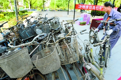 “吉慶里的冬青叢邊就停著幾輛自行車,不知道多少年沒人碰過了!背饨值老嚓P(guān)負(fù)責(zé)人說,在老舊小區(qū),不論是墻根下,還是車棚里,都能找到“僵尸自行車”的身影。它們有的落滿塵埃、銹跡斑斑,有的輪胎發(fā)癟開裂,甚至“缺胳膊少腿”,擠占了大量公共空間。為了清僵尸車給共享單車騰地兒,一個(gè)月前,吉慶里社區(qū)在每輛自行車的把手上系了一根紅繩,如果紅繩被摘除,就說明車子有主人,反之,則由社區(qū)、街道統(tǒng)一回收、清走。此外,居民自家的閑置自行車也能送到社區(qū),兌換盆栽、綠植。