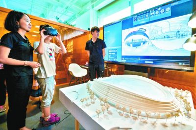 在實(shí)驗(yàn)劇場(chǎng),觀眾欣賞了一場(chǎng)全息芭蕾舞劇,真人與虛擬現(xiàn)實(shí)融為一體,虛實(shí)難辨,美輪美奐。最熱鬧的當(dāng)屬能夠和高科技設(shè)備交互體驗(yàn)的展位,改革開(kāi)放AR拍照合影、VR動(dòng)感單車(chē)、體感共舞系統(tǒng)、滑雪演練平臺(tái)等展位前,觀眾們排起了隊(duì)紛紛來(lái)嘗鮮!皝(lái)自北京國(guó)企的這些現(xiàn)代前沿顯示技術(shù)太驚艷了!”一位來(lái)自埃及的留學(xué)生不時(shí)點(diǎn)頭稱(chēng)贊。