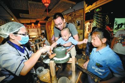 昨天,航天科工二院30余位職工和子女來(lái)到北京市腐乳科普館,了解“王致和”腐乳的歷史趣聞、腐乳的分類(lèi)、加工工藝等科普知識(shí)。本報(bào)記者 潘之望攝