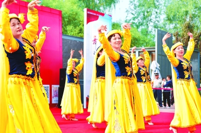 海淀公園廣場(chǎng)上音樂(lè)悠揚(yáng),“海淀大媽”穿著鮮艷的民族服飾,跳起喜慶的廣場(chǎng)舞。當(dāng)天,海淀區(qū)廣場(chǎng)舞達(dá)人秀老年組比賽在這里進(jìn)行。記者和冠欣 攝