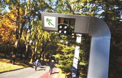 從海淀公園東門進入,左手邊可以看到一塊標有“智能步道排行榜”字樣的電子顯示屏,屏幕內(nèi)置了攝像頭,可以現(xiàn)場刷臉。北青報記者看到,公園內(nèi)的跑道與普通跑道并無區(qū)別,只是在起點、中間和終點三個位置的地面上寫著“向上看鏡頭”字樣。游客跑到這幾個位置的時候,只要有意識地向上看,攝像頭就會自動識別并記錄相關(guān)信息。等跑完一圈后,游客再回到大屏幕前刷一次臉,此次跑步的運動里程、時長、平均速度、熱量消耗等數(shù)據(jù)就會全部顯示在屏幕上。