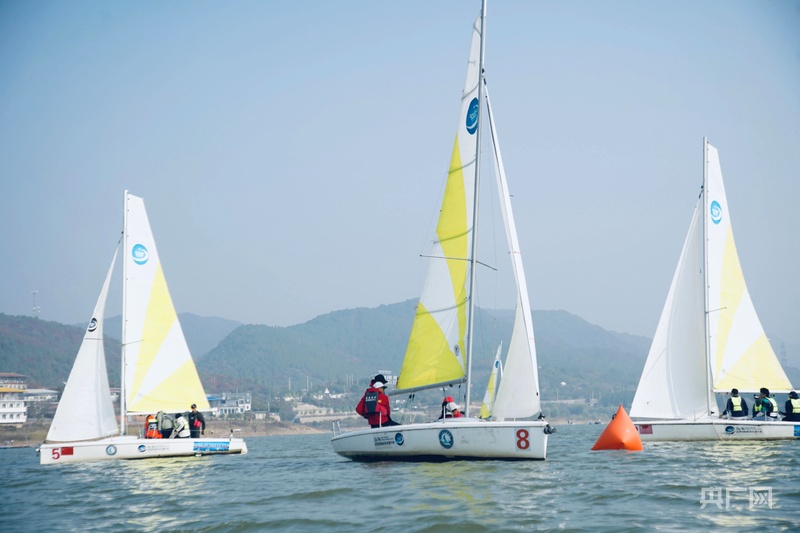 賽事現(xiàn)場(chǎng)亮點(diǎn)紛呈。成人組選手在起航線上精準(zhǔn)卡位,憑借默契配合調(diào)整風(fēng)帆,時(shí)而并驅(qū)爭(zhēng)先、浪花飛濺,時(shí)而巧妙避讓、上演“風(fēng)浪間的智慧博弈”。青少年選手雖年紀(jì)尚小,卻展現(xiàn)出出色的判斷與操作能力,小小身影在甲板上從容穿梭,彰顯新生代帆船運(yùn)動(dòng)的朝氣與潛力。不少觀眾感嘆:“金海湖賽場(chǎng)以青山為背景,白帆點(diǎn)綴其中,每一幕都如詩(shī)如畫。”