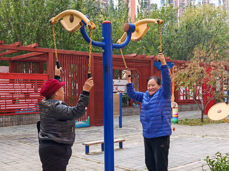 居民在社區(qū)鍛煉身體(央廣網(wǎng)記者 龐婷 攝)