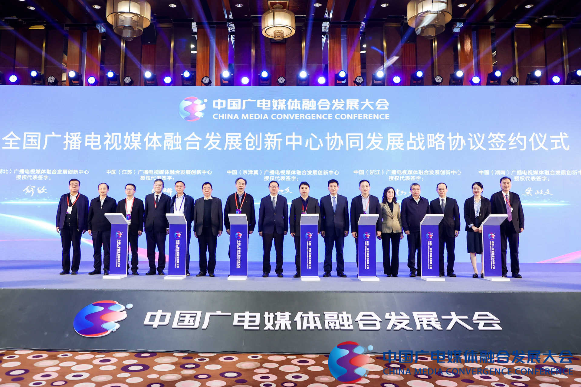 圖為《協(xié)同推進(jìn)媒體融合創(chuàng)新發(fā)展戰(zhàn)略合作協(xié)議》簽署現(xiàn)場(chǎng)。(圖片來(lái)源:中國(guó)廣電媒體融合發(fā)展大會(huì)組委會(huì))