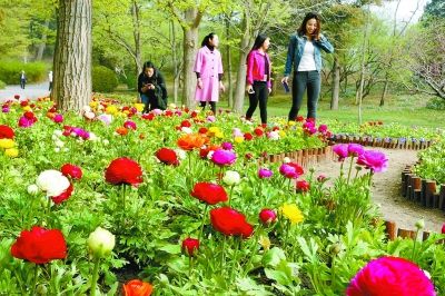 香山公園管理處相關(guān)負(fù)責(zé)人表示,本屆山花觀賞季共使用近5萬(wàn)余株各類花卉布展,涉及40余個(gè)品種,“在北京比較常見(jiàn)的地栽花卉,在香山都可以看到!苯衲陮⒂1萬(wàn)余株“山花之王”花毛茛展出,花期長(zhǎng)達(dá)兩個(gè)多月,香山是華北地區(qū)最大的花毛茛景區(qū),此花在本市其他地方很少見(jiàn)。