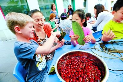 日前,東直門街道聯(lián)合香北社區(qū)共同在萬國城北區(qū)戶外廣場舉辦“粽享童年”兒童嘉年華活動(dòng)。中外兒童在老師們的帶領(lǐng)下與社區(qū)居民一起動(dòng)手包粽子,體驗(yàn)獨(dú)具特色的中國傳統(tǒng)民俗文化。本報(bào)記者 孫戉攝