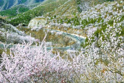 近日,氣溫回升,北京山區(qū)的山桃花、山杏花進(jìn)入盛放期,漫山花海,美不勝收。 何建勇攝