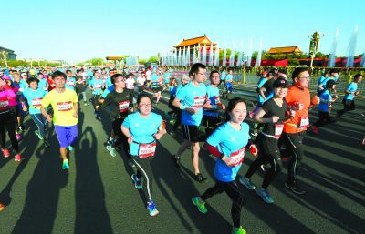 15日上午7時(shí),2018北京國(guó)際長(zhǎng)跑節(jié)、北京半程馬拉松在天安門廣場(chǎng)鳴槍起跑,大約18000人參加了比賽。