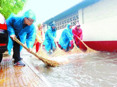 昨天,順義區(qū)勝利街道建南二社區(qū)的在職黨員利用休息時間,冒雨清除路上積水,為居民安全出行創(chuàng)造良好條件。通訊員 閆兆松攝
