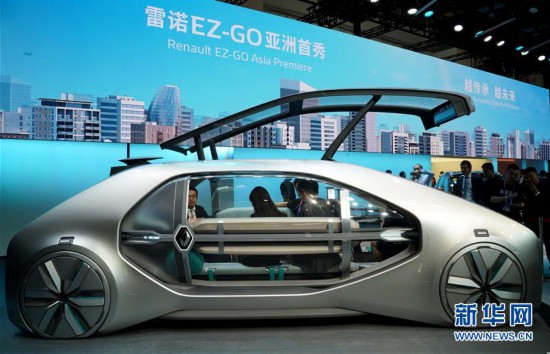 4月25日,觀眾在參觀雷諾展出的一臺(tái)概念車。