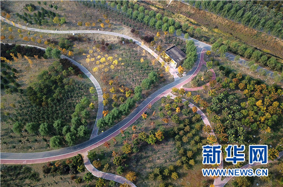這是10月20日無(wú)人機(jī)拍攝的北京平谷濕地公園。