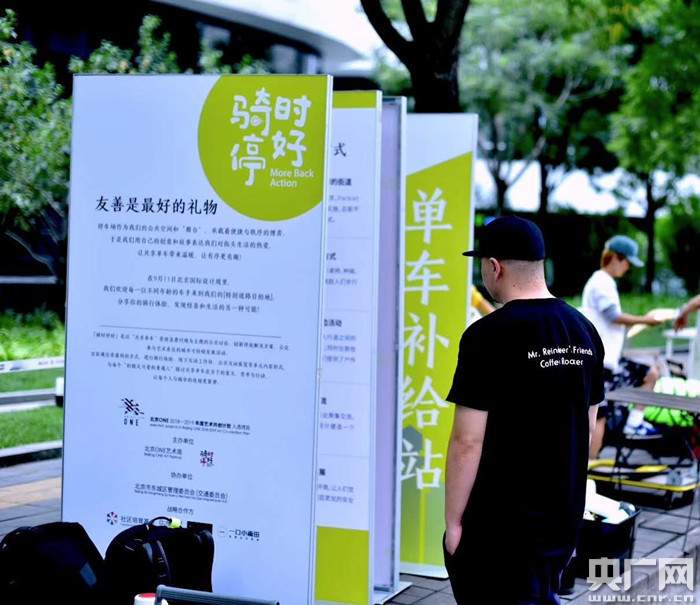 央廣網(wǎng)北京9月12日消息(記者劉天思)9月11日中午,北京二環(huán)里的銀河SOHO西側(cè),幾個(gè)道路停車位上,出現(xiàn)一組唱歌、朗誦、午休、練瑜伽,午睡的年輕人。這是今年北京國際設(shè)計(jì)周東城分會(huì)場一個(gè)特別的街頭公共藝術(shù)。當(dāng)天,在三個(gè)道路停車位上,幾個(gè)年輕人先后做了很多平日在街頭不會(huì)發(fā)生的有趣活動(dòng),如4人一組練習(xí)瑜伽,擺上幾個(gè)懶人沙發(fā)伴著蟬鳴午休,在街頭合唱,朗誦秋日詩歌,還有街頭迷你手沖咖啡館,F(xiàn)場,項(xiàng)目發(fā)起人馬艷艷說:“設(shè)想如果汽車拋錨可以叫救援服務(wù)的話,那么自行車也該有更多配套的城市新服務(wù)出現(xiàn),傳統(tǒng)街區(qū)的自行車修車攤能否轉(zhuǎn)型“自行車救援服務(wù)”,今天我們在一旁的自行車道上準(zhǔn)備了“騎行補(bǔ)給站”除了為路過的騎行者或路人發(fā)放礦泉水和加油的小旗幟,也請她們參加共同完成了一張北京騎行友好路線圖,收集有趣的騎行故事!