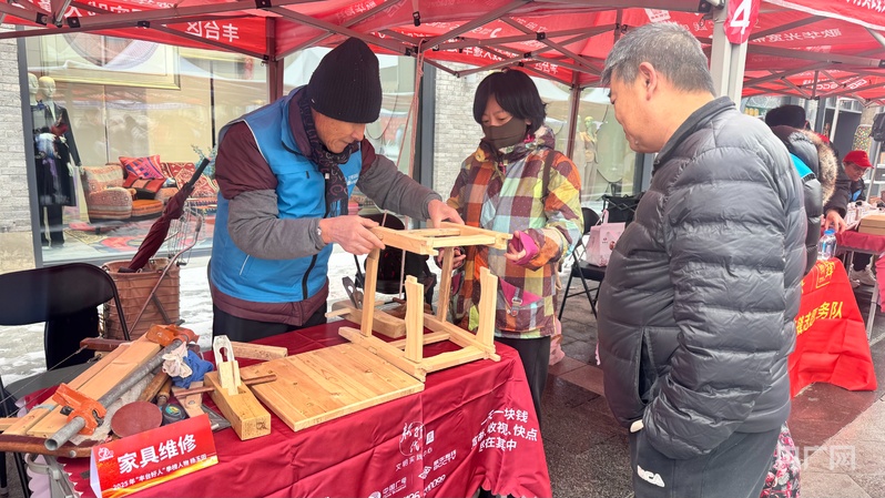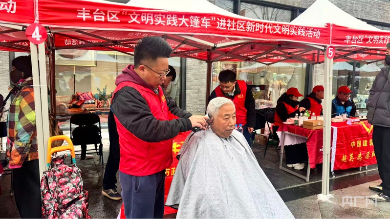 啟動儀式后,“志愿服務(wù)市集”正式開市,這也是2026年豐臺區(qū)“文明實踐大篷車”進社區(qū)的首場活動。市集涵蓋政策咨詢、健康義診、反詐宣傳、非遺體驗、理發(fā)磨刀等40余個服務(wù)項目,吸引大批居民駐足體驗。