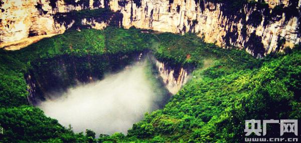 央廣網(wǎng)奉節(jié)10月9日消息 天坑地縫旅游風(fēng)景區(qū)位于奉節(jié)縣荊竹鄉(xiāng)小寨村,是世界上深度和容積最大的巖溶漏斗。天坑口四面絕壁,如斧劈刀削,宏偉壯觀?又杏袩o(wú)數(shù)幽深莫測(cè)的洞穴和一條洶涌澎湃的暗河。中西探險(xiǎn)家曾多次深入天坑探險(xiǎn), 探明天坑中暗河經(jīng)出水洞流向迷宮河, 推測(cè)天坑中暗河來(lái)自神秘的大地縫。