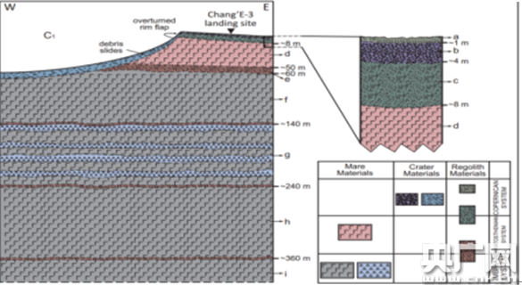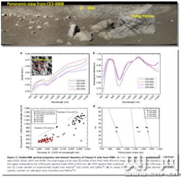 嫦娥三號開展了著陸區(qū)月壤內(nèi)部與月殼淺層結構探測。首次研制的超寬頻帶測月雷達,采用“邊走邊探”方式,獲得著陸區(qū)月殼淺層330米深度內(nèi)的剖面結構特性及地質演化圖,這也是國際首幅月球地質剖面圖。利用月球車上全部四臺科學儀器的探測數(shù)據(jù)的研究,國際上首次揭示了月球雨海區(qū)的火山演化歷史。利用粒子激發(fā)X射線譜儀和紅外成像光譜儀探測數(shù)據(jù),發(fā)現(xiàn)一種全新的月球玄武巖。