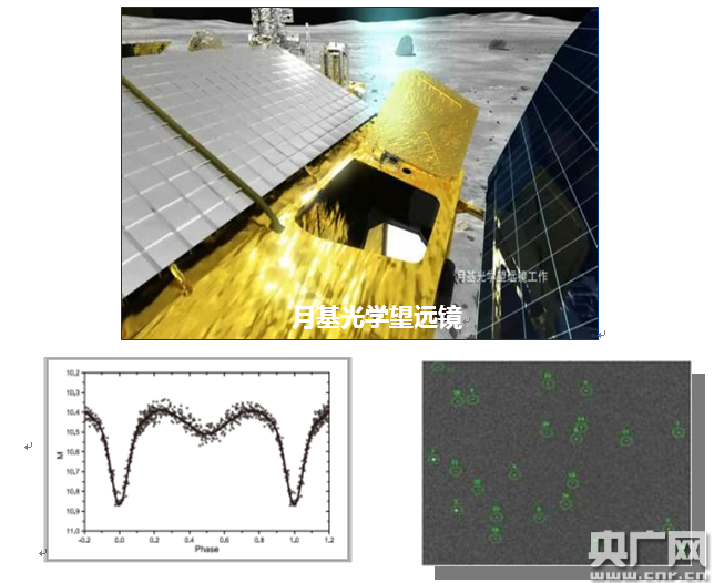 研制了首臺月基光學望遠鏡,利用月球高真空無大氣影響和月球自轉緩慢因而連續(xù)觀測周期長的特點,一是在月面上對多個天區(qū)實現(xiàn)3900多小時近紫外天文觀測,已獲得18.7萬幅圖像數(shù)據(jù)。二是得到一批重要密近雙星完整的紫外光變曲線,發(fā)現(xiàn)仙王座GK星是雙星快速物質交流演化中的天體,對檢驗雙星理論模型具有重要意義。三是獲取了月球外逸層水含量的最新結果,水的含量比哈勃望遠鏡的探測結果低2個數(shù)量級,與理論預期值最為接近,修正了國外得出的月球上有大量水分子存在的結論。