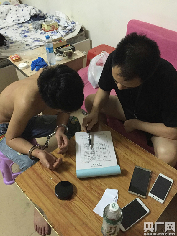 民警給嫌疑人做筆錄。(央廣網(wǎng)記者 于鑫淼 攝)