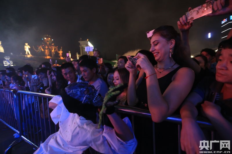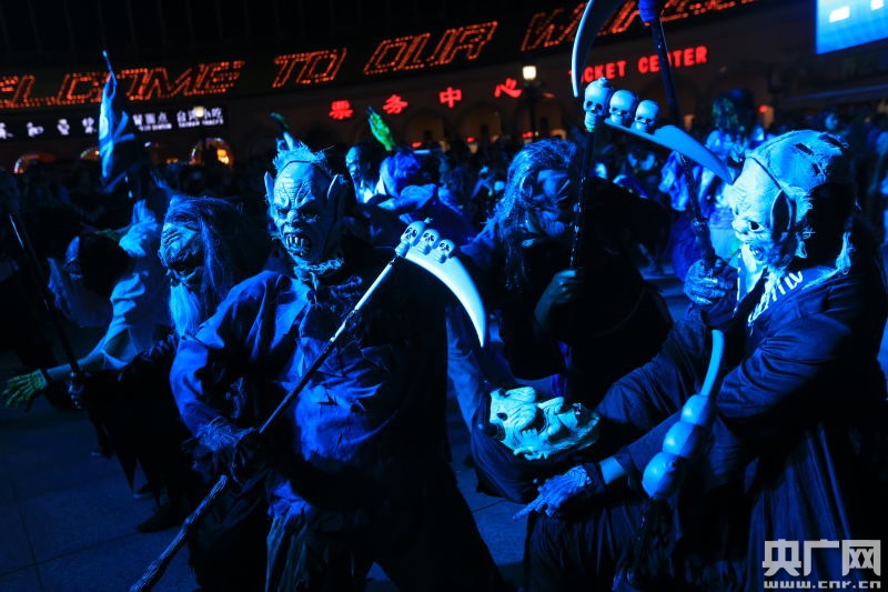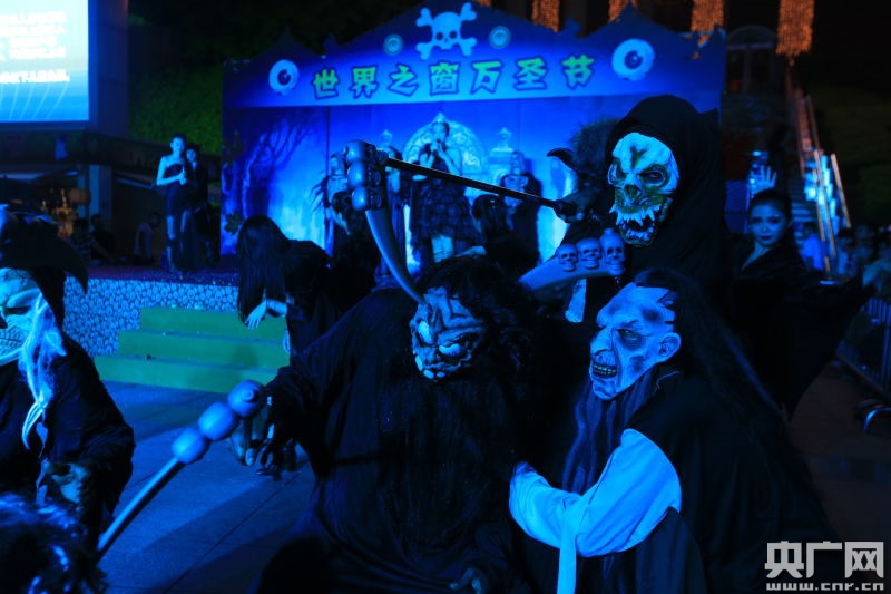 央廣網(wǎng)深圳10月16日消息(記者于揚)10月14日晚,深圳世界之窗前廣場人潮攢動,光影魅惑,2016世界之窗萬圣節(jié)開幕式,魔幻上映,為期一個月的萬圣狂歡拉開大幕。開場舞“激情夜驚魂”在音樂響起一刻,瞬時聚焦全場目光。妝容妖嬈美艷的“異鬼”空降舞臺,大方秀出“鬼國”奇舞。伴隨著空靈幽魅的音樂,魔都魅影輕盈上演,現(xiàn)場氣氛一時被渲染得詭譎莫測……緊接著,激揚亢奮的節(jié)奏響起,鬼國方陣出列,踩著節(jié)拍,一場百鬼巡城大狂歡舞蹈秀歡快上演,詭密氛圍一掃而空,眾人沉浸在“鬼兵”精彩的舞姿中……