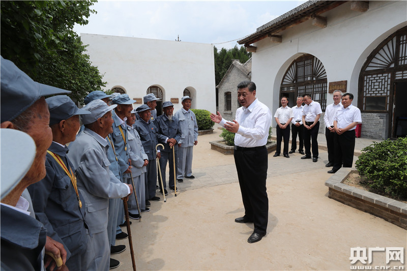 在晉綏軍區(qū)司令部舊址,總書記同當(dāng)年在晉綏邊區(qū)參加對敵斗爭的老戰(zhàn)士們親切交談。習(xí)近平說,呂梁我是第一次來,我心里一直向往著晉綏根據(jù)地。今天,全黨全國各族人民正在為實現(xiàn)“兩個一百年”奮斗目標、實現(xiàn)中華民族偉大復(fù)興而奮斗。我們一定不能忘記為革命成功拋頭顱、灑熱血的前輩們,不能忘記為抵抗日本軍國主義侵略、為建立新中國、為社會主義革命和建設(shè)作出貢獻的老同志們。