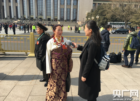 西藏代表團藏族代表澤仁永宗是西藏昌都市基層醫(yī)務工作者。她表示,作為一名新當選的人大代表,肩負著基層醫(yī)療事業(yè)的重任。她說:“我來之前和同事們一起做了一些調研。這次我?guī)砹岁P于加強西藏農(nóng)村醫(yī)療基礎設施、加強大學生就業(yè)渠道等幾個議案,希望能夠落實,這也是我們大家的心聲!边@幾年基層的醫(yī)療方面有了很多大的進步,如設施的配備、人才的引進等,但還需要進一步完善。