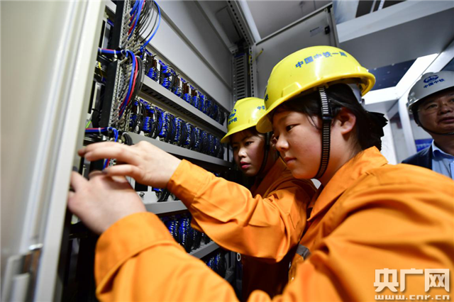 中鐵一局電務(wù)公司信號女子班組中,22歲的女工李凡(右1)和趙妍(右2)在鄭州地鐵5號線金水東路站進(jìn)行地鐵信號線綁扎。(央廣網(wǎng)發(fā) 牛榮健攝)