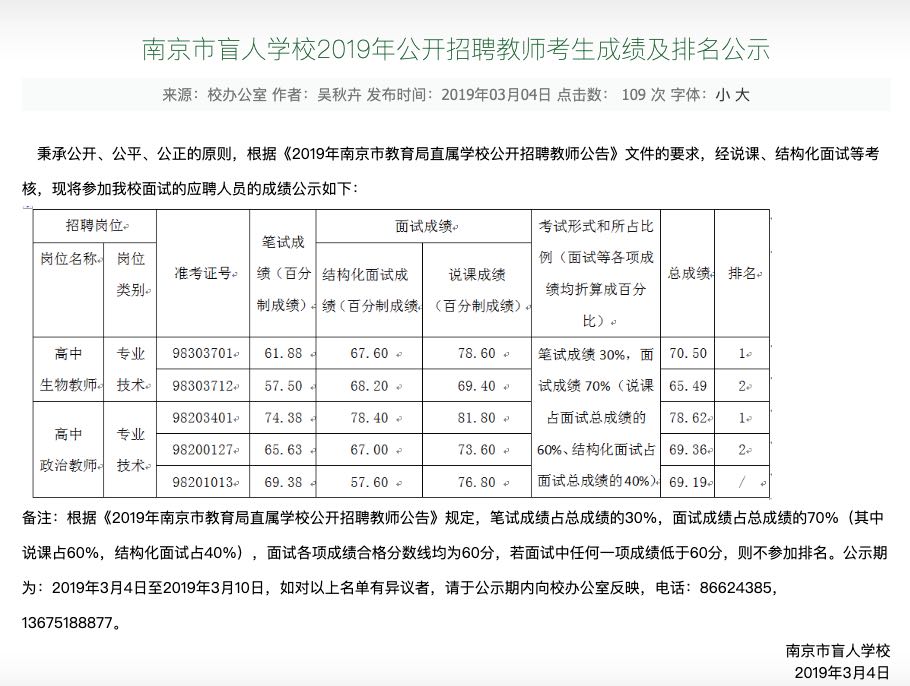 南京市盲人學(xué)校的前身,始建于1927年,是中國(guó)第一所公立特殊教育學(xué)校。目前,該校是江蘇省唯一一所獨(dú)立設(shè)置的盲校,也是南京市教育局直屬學(xué)校。南京市教育局相關(guān)負(fù)責(zé)人對(duì)記者表示,他們很重視這個(gè)事情,但是否錄用他,不是教育部門一家決定的。目前正在積極和市人社局溝通,并上報(bào)市政府妥善處理。