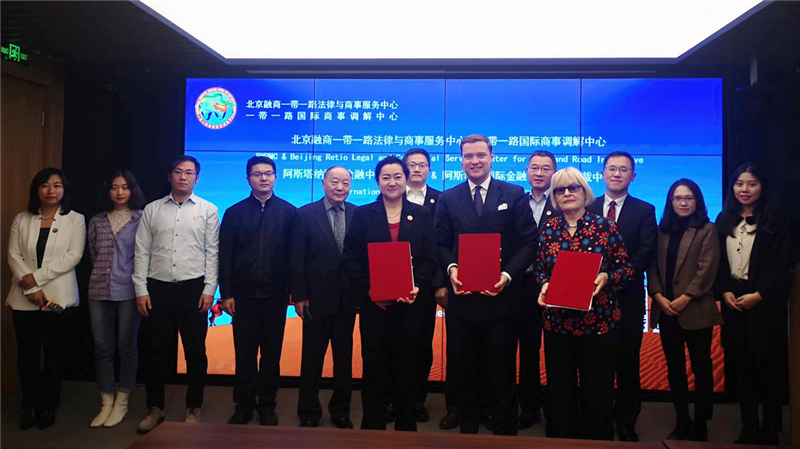 北京融商一帶一路法律與商事服務(wù)中心暨一帶一路國(guó)際商事調(diào)解中心與AIFC、IAC簽署備忘錄(主辦方供圖)