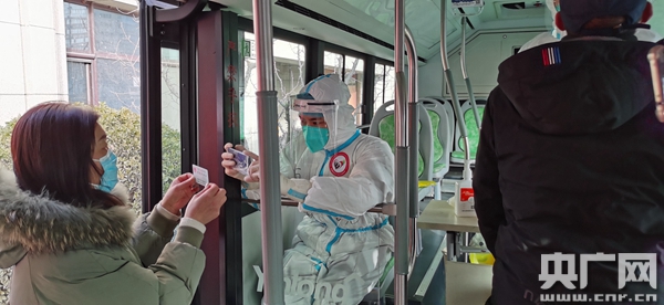 石家莊市公共交通總公司1路車隊副書記吳靜告訴記者:“現(xiàn)在天氣特別寒冷,要檢測的居民也特別多,我們就把公交車變成檢測車,投放到各個社區(qū)。”