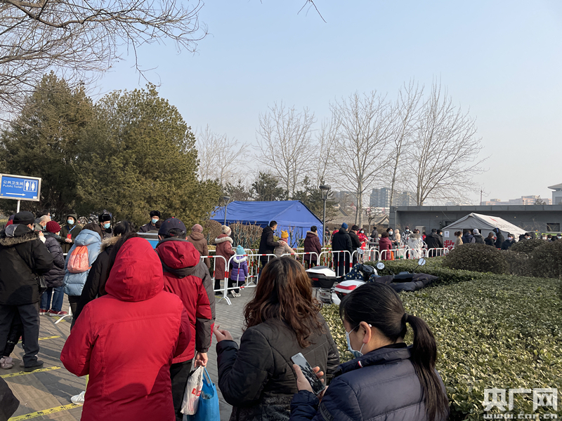 22日一早,在北京西城區(qū)白云觀檢測(cè)點(diǎn),收到通知的周邊居民陸續(xù)前來(lái)檢測(cè),隊(duì)伍越排越長(zhǎng),F(xiàn)場(chǎng)工作人員說(shuō),該檢測(cè)點(diǎn)一天會(huì)有1萬(wàn)多人前來(lái)檢測(cè)。