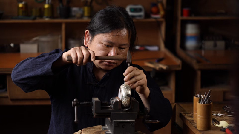而潘仕學(xué)那段關(guān)于人生價值的思考也令人回味:很長一段時間我因?yàn)檎莆樟恕懊玢y鍛造”技藝感覺自己很有本事,后來我把這門手藝教給更多的人,特別是我所在的麻料村重回了“中國銀飾之鄉(xiāng)”的盛景,并在互聯(lián)網(wǎng)上聲名遠(yuǎn)播時,我感到的是從未有過的幸福和滿足!那時候,我也真正明白,人生價值的實(shí)現(xiàn),不是來自于自己多有本事,而是我可以分享我的技術(shù),帶動更多的人和我一起奔小康!我會繼續(xù)努力,繼續(xù)我的幸福!