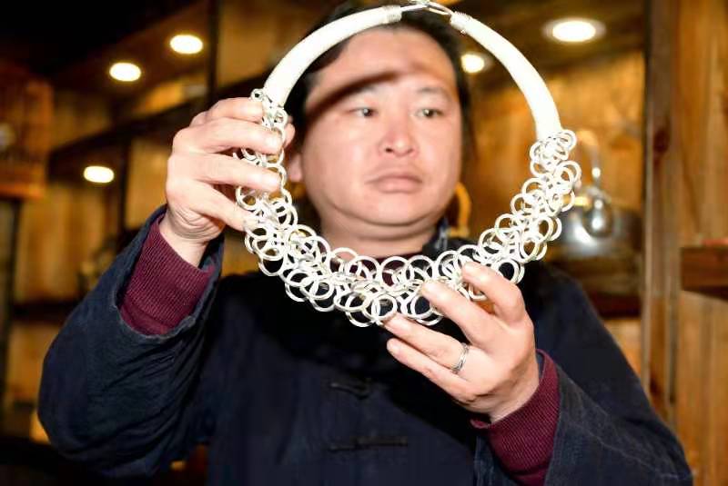 曾經(jīng)的潘仕學(xué)是外出打工大潮中的一員,如今的他,不僅成為了網(wǎng)紅非遺傳承人,還通過新客源、新銷路、新模式帶動銀飾業(yè)不斷發(fā)展壯大,幫助老弱婦孺及貧困村民創(chuàng)業(yè)增收、脫貧致富。這是潘仕學(xué)給村民們帶來的希望。