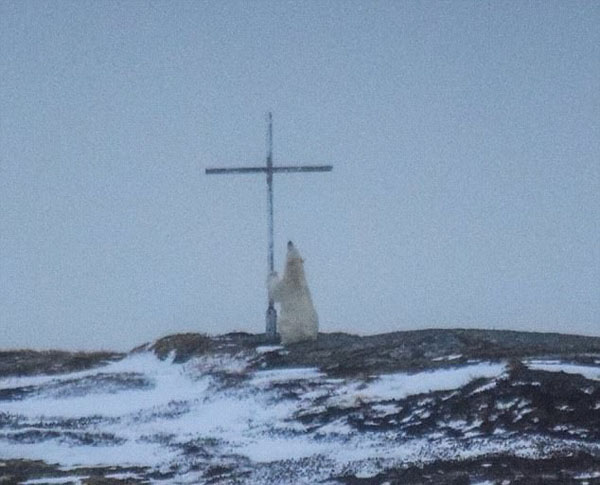近日,加拿大22歲的女?dāng)z影師杰西卡安德魯斯在紐芬蘭無(wú)意間捕捉到了一只北極熊對(duì)著十字架“祈禱”的畫(huà)面,沒(méi)想到北極熊竟也能如此虔誠(chéng)。