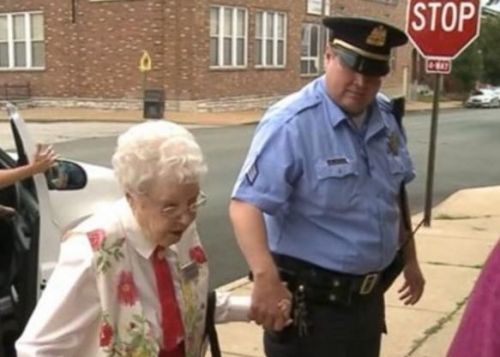 美國密蘇里州一位102歲的老婦人西蒙斯上周被警方逮捕,帶著手銬坐進了警車后座。不過,西蒙斯并未犯罪,這只是為了滿足她坐警車的心愿。