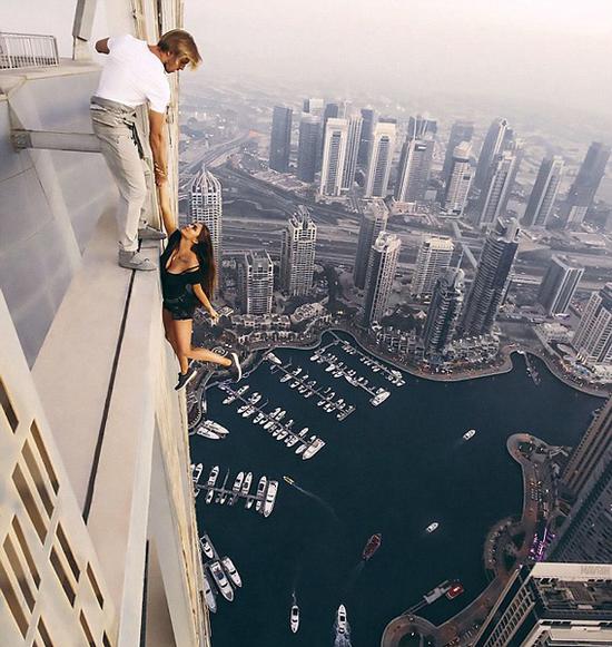 近日,俄羅斯網(wǎng)紅維姬為尋找最美拍照角度,爬上了迪拜的卡延塔(世界上最高的摩天大樓之一,外觀呈90度扭曲旋轉(zhuǎn)),并在不佩戴任何安全裝置的情況下,只借助男同伴以手拉拽便將身體探出塔外1004英尺(約為306米)的高空中,此舉引起網(wǎng)友熱議。