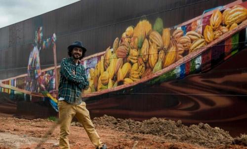 此次的壁畫,科布拉以巧克力的原材料可可為題材。畫中,一名男子在“巧克力河”上劃著小船,船上滿載著可可果實。