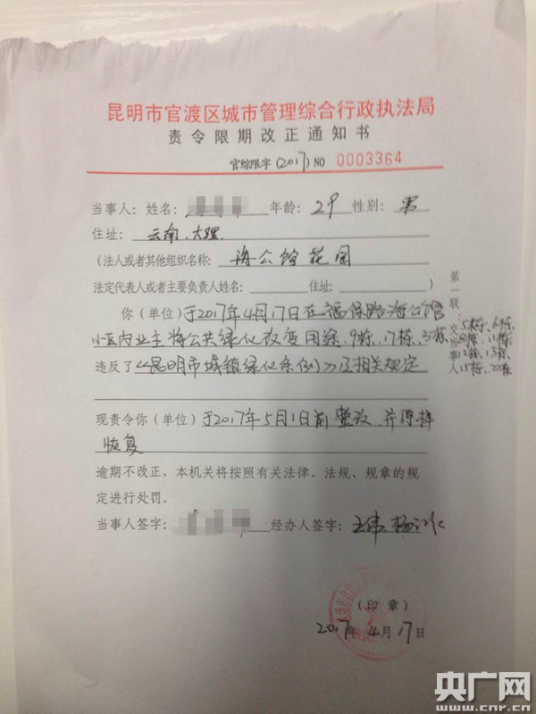 而一樓業(yè)主的說法,也被開發(fā)商云南招商城投公司所認(rèn)可。一位樓盤售后經(jīng)理證實(shí),“當(dāng)時(shí)買房的時(shí)候,一樓的業(yè)主是可以使用這個(gè)花園的,其他業(yè)主都簽過字的,這不叫侵占。只是說對(duì)花園的使用以及圍合的面積,還有一些樣式有一些規(guī)定,不能夠改變他原來圍合的形式,F(xiàn)在有個(gè)別業(yè)主,圍合的部分超出了原來規(guī)定的高度,還有些局部硬化了,我們要求他整改!