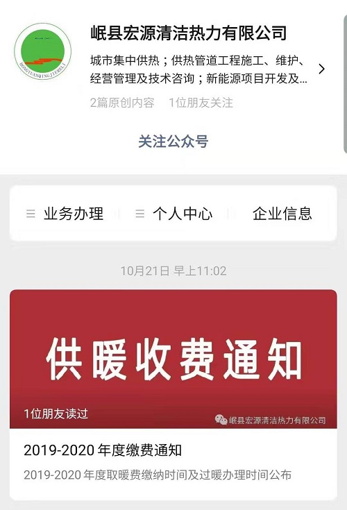 宏源清潔熱力公司公眾號(hào)仍然是繳費(fèi)公告