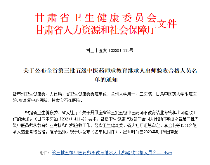央廣網(wǎng)北京9月22日消息 據(jù)中央廣播電視總臺(tái)中國(guó)之聲《新聞?dòng)杏^點(diǎn)》報(bào)道,近日,甘肅省衛(wèi)健委公布了全省第三批五級(jí)中醫(yī)藥師承教育繼承人“出師”驗(yàn)收合格人員名單,1841名中醫(yī)繼承人順利出師,其中有99名省級(jí)繼承人,1742名市縣鄉(xiāng)村繼承人。