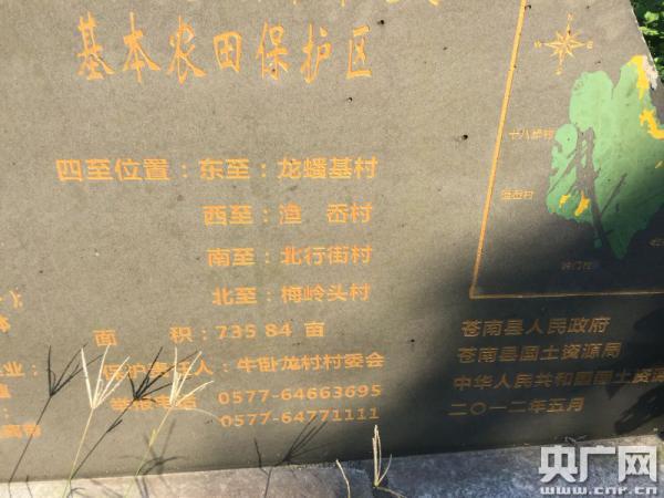 據(jù)村口不遠(yuǎn)處的一塊石碑上寫著“蒼南縣金鄉(xiāng)鎮(zhèn)牛臥龍村基本農(nóng)田保護(hù)區(qū)”,面積735.84畝,村民告訴記者,征地范圍恰好在其中。記者來到金鄉(xiāng)鎮(zhèn)土管所,查詢結(jié)果顯示被征用土地的是耕地和林地,但已經(jīng)辦理了土地性質(zhì)變更手續(xù),成為建設(shè)用地。
