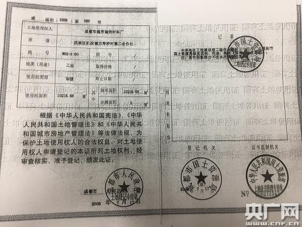 成都市國土局為何要收回夏芳廠房的國土證?記者前往成都市國土局了解情況,辦公室王姓工作人員稱,案件進入司法程序,不能接受采訪。