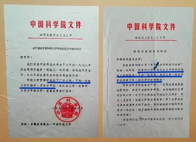 伴著科學(xué)的春天,中科大也迎來(lái)了1978年夏季第二期少年班的大學(xué)生!暗谝黄谏倌臧嗾猩褪强茨懵斆鞑宦斆鳎喈(dāng)于做智力測(cè)驗(yàn)。第二期就要先按高考招生大綱單獨(dú)命題。由科大老師單獨(dú)命題出了一套卷子,工作量巨大,相當(dāng)于組織一次‘小高考’。全國(guó)29個(gè)省、市、自治區(qū)組招生組來(lái)做科大專門(mén)招考的這套題目。這套題目達(dá)到一定的分?jǐn)?shù)線,被認(rèn)為就達(dá)到可以進(jìn)入本科學(xué)習(xí)的標(biāo)準(zhǔn)了。”