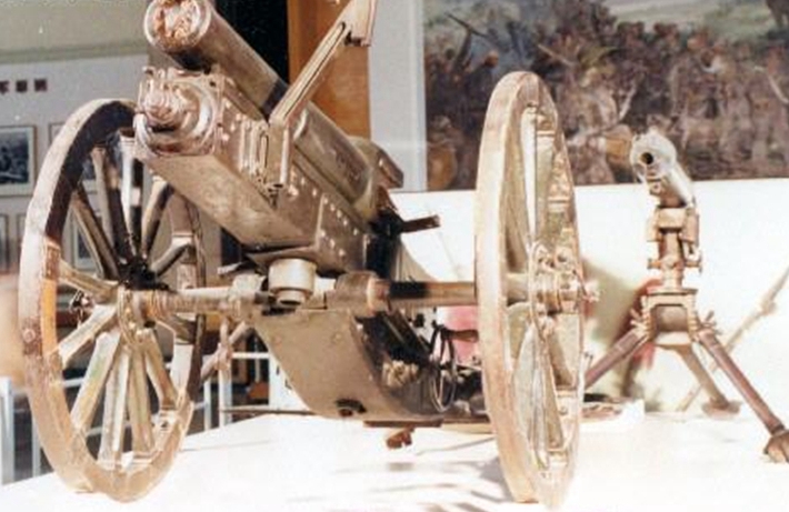 [馬沈:大概是在1959年9月15號,這一天賀龍元帥到軍事博物館審查。軍事博物館那時還處在預展階段,他來軍博看了長征部分之后說,你們少了一門炮,他下令讓人去找這門炮。最后這門山炮找到了,送到了軍博。作為中國人民革命軍事博物館,強調(diào)“革命軍事”,它是當仁不讓的“鎮(zhèn)館之寶”。]